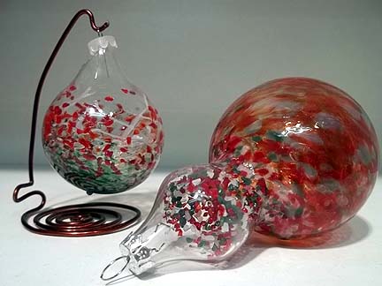 Glass Blowing: Blown Ornaments on Hot Head Torch : Advanced BeginnerWHAT?? Blown Glass Ornaments on a HOT HEAD??? Yes, it's true! Come and learn how it's done during this 2-hour class. Bring your lampworking equipment -- and your Crock Pot, too -- and a new can of gas. We will supply 4 "points" and decorative frit and stringers to use in class. Additional points and frit available separately. This glass is COE 90 and IS NOT compatible with your COE 104 beadmaking glass, so be careful not to mix them up!