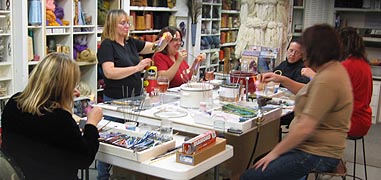 Tap Here to Find Price, Date Options & Online Registration Glass Bead Making: Beginners Start Here :Learn the basics of glass bead making during this day-long workshop. Basic skills will be demonstrated and practiced by students such as: basic bead making, using multiple colors, pulling stringers, applying lines and dots, and shaping. We work with Italian glass rods which come in a fabulous range of colors. General safety guidelines and suggestions for home work spaces will be discussed. Each student receives basic start-up equipment and torch -- to keep! (For those people who already own their own equipment, the class fee is $110. We will still provide a selection of glass. To register, use the button shown below... all others, use the button at the top.) You can go home that night and make more beads!! We teach using the HOT HEAD TORCH -- specifically designed for lampworking -- which is economical, straight forward and easy to incorporate into your home environment. Beads will need to cool down slowly... so plan to come in the next time our studio is open to retrieve them. We carry a full line of glass rods, mandrels, bead release, enamels, frits, books and tools for lampworking so you can purchase any additional items you may need the day of class and beyond. We accept *mature* kids, age 12 and up, when they take the class with an adult (ask for our special price) and prior approval by one of our lampworking staff members. (Please schedule 1 week in advance to have your child meet with us prior to registering for this class). Age 16 and up may take the class alone. We do require a signed release for all students regardless of age.