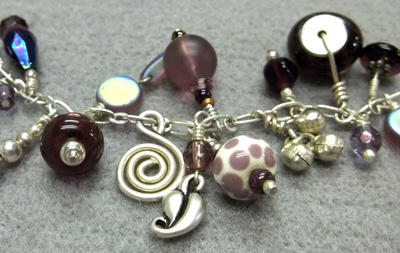 This class introduces the beginner jewelry student to the basic wire twist link that is a building block for most jewelry art assemblage. Students will learn how to make a collection of links and dangle components using head pins, eyepins and straight wire and then proceed to learn how to connect them for earrings, bracelets and necklaces or choose to make a charm bracelet. Regardless of your choice this class will offer the repetition needed to gain skill at professional looking wire wrapping. Projects may include one-of-a-kind lampwork beads, Bali silver beads, charms and Swarovski crystals (purchased separately). The bead obsessed will enjoy this class since we put a heavy dose of design strategy into our beading classes that will take students beyond the "cookie cutter" approach and challenges each participant to create their own wearable art.