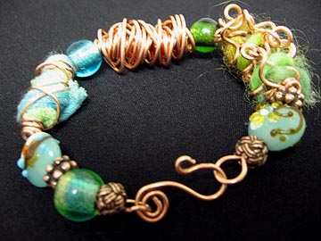 Make a cool, chunky bangle bracelet during this 3 hour class. Learn how to make the twisted wire components that you add to your collection of unique charms, lampwork (and other) beads... all items are carried on a chunky wire core that is the base of the bangle. Learn how to create your own professional connector (clasp) that is also decorative.