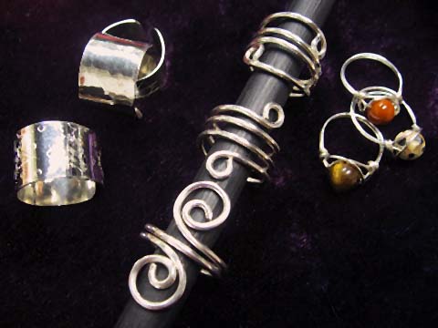 In this beginner level, cold metal work class, students will learn about different silver materials suitable for ring making, how to manipulate and texture sterling silver sheet and the skills needed to work with various gauges of wire. Students will complete 3 to 4 projects during class time and wear them home the same day! One project involves cutting, texturing, filing, sanding, shaping silver sheet to make a “Split Shank Ring”. Another project involves bending a thicker (14 or 16 gauge) wire to create one or two “Swirl Rings”. Finally we will work with a 20 gauge wire and one bead (great to showcase your own lampwork beads) and wind it into a “Wire Wrap Ring with focal bead”. Since this is an introductory class, students can simply bring a pen and pad for note taking. Metalworking tools may be purchased from the design center the day of class, if desired.