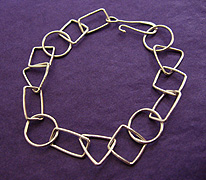 You must have experience in soldering to take this class. This class will advance your cutting, shaping and soldering skills in the creation of your own professionally finished, silver linked chain with clasp. Make a short chain for a bracelet or a longer one for a necklace. Choose one of the chain styles shown above and use studio equipment or your own (butane torch, third hand, soldering honeycomb, files & saw. Suggested Reading: "Creative Silver Chains" by Chantal Lise Saunders (available in the design center)