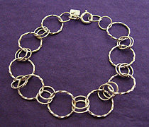 This class will introduce entry level students to 4 different basic link making techniques and connection methods for chain designing. Students will create one sample link from each style of chain presented by instructor, and then go on to choose one style to continue on with the creation of their own professionally finished bracelet complete with clasp. Students will use Design Center tools... but should feel free to bring their tool box if they've already started a collection. Students choosing the beaded chain style (as shown in bracelet style #1) should bring a small collection of beads to class (or purchase from the Design Center). Students may opt to make a necklace by purchasing additional materials.