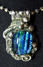Students will learn how to design and plan a stunning pendant from start to finish whose focal element is a sparkling dichroic cab. Learn how to properly set and fire a piece with a larger glass inclusion in place. Students will leave with some polished, finished work such as silver clasp, earrings or other design elements, but the pendants will need to cool slowly in the kiln to be picked up at a later time. Silver Clay and 1 dichroic glass stone provided. (You can learn to make your own dichroic glass stones in our glass fusing class for beginners.)