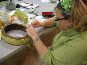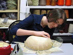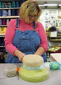 Jan Wutkowski: Attended the Melbourne School of Millinery in Melbourne, Australia under the tutelage of Waltraud Reiner who was trained by the Queen's milliner, Rose Corey, in London. Jan combines many other techniques including French hand sewing, ribbon work, embroidery, beadwork and crochet in her hats which she markets through her North Carolina business aMuse